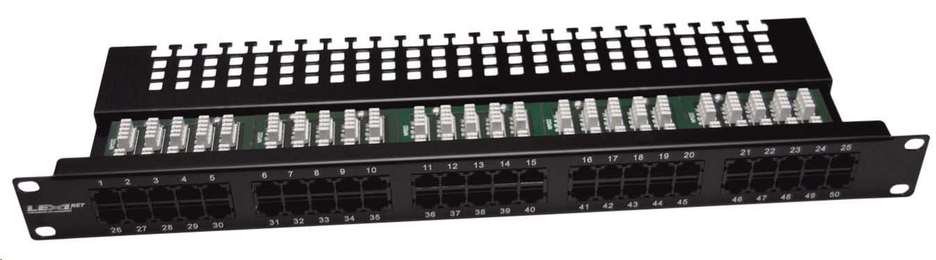 19" Patch panel LEXI-Net telefonní 50port, UTP, Cat3, krone, černý