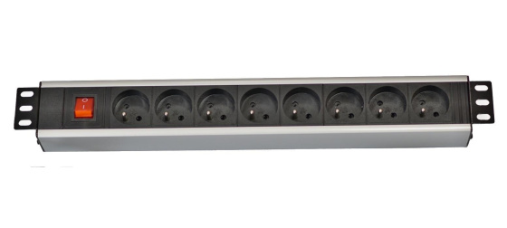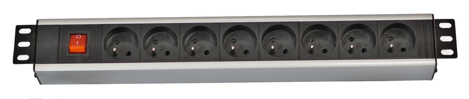 19" rozvodný panel LEXI-Net 8x230V, ČSN, vypínač, indikátor napětí, kabel 3m, 1U