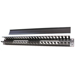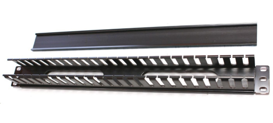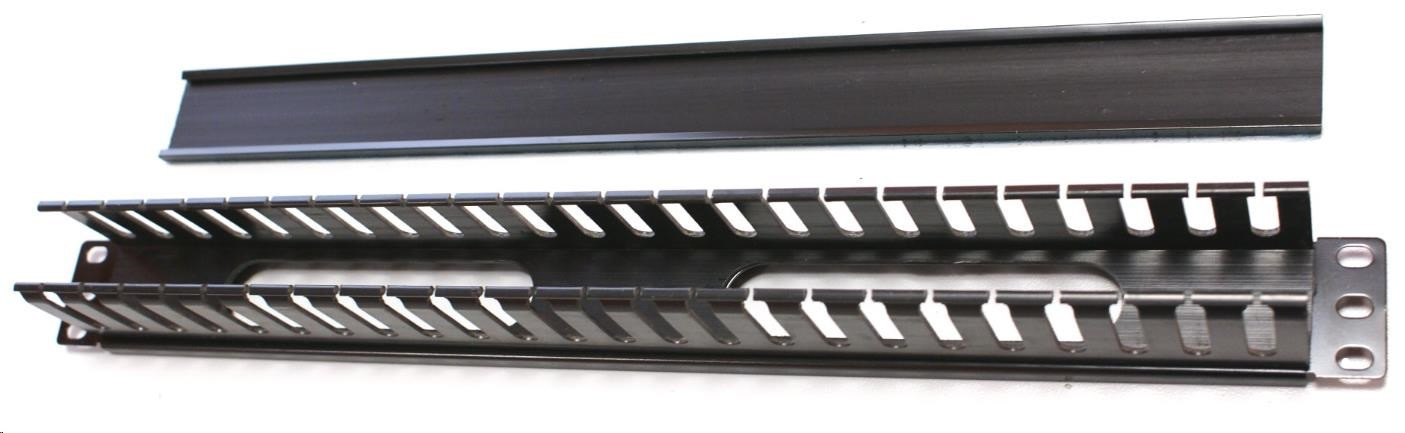 19" vyvazovací panel 1U, kovový s plastovým krytem, 40x50mm, průchozí, černý