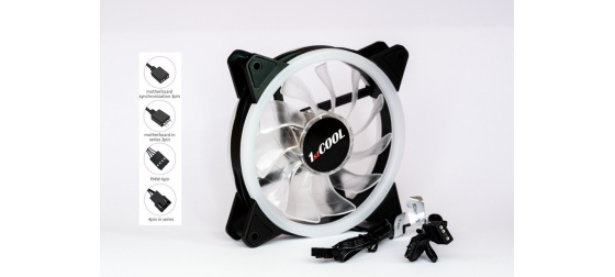 1stCOOL AURA EVO DUAL RING adresovatelný RGB ventilátor 12cm / 4pin PWM fan napájení IN + 4pin PWM OUT + ARGB 3pin IN + ARGB 3pin OUT