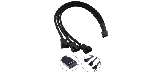 - redukce pro připojení až tří kusů ventilárorů s konektorem 3-4pin PWM, umožňuje připojení do jediného konektoru na základní desce.