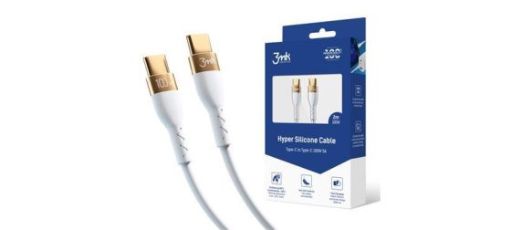 3mk datový kabel - Hyper Silicone Cable C to C 2m 100W, bílá