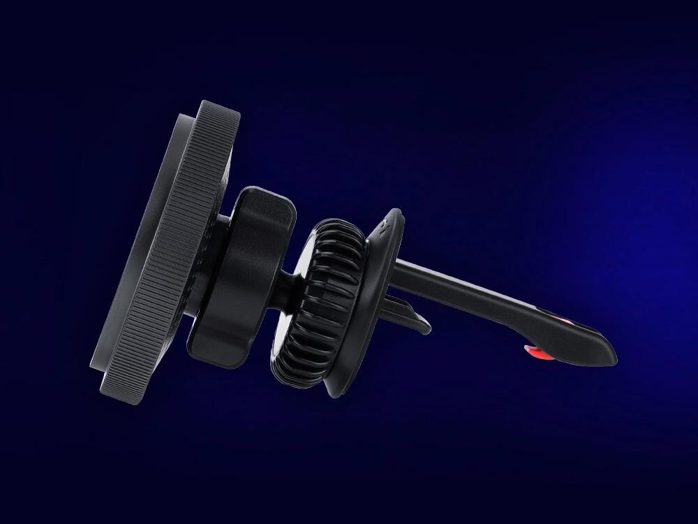 Instalace je velmi jednoduchá – držák se připevní přímo do ventilační mřížky automobilu. Konstrukce je navržena tak, aby držela pevně a zároveň neomezovala výhled řidiče. Elegantní hliníkové provedení navíc dobře zapadne do moderního interiéru vozidla.