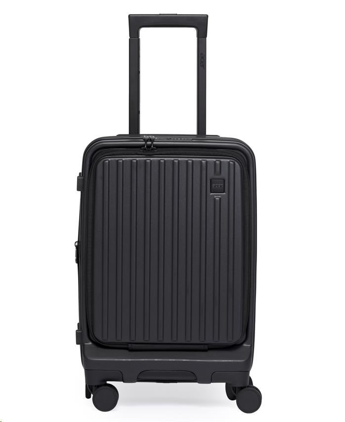 Acer Barcelona luggage 20", černý, pevný cestovní kufr, materiál: 100% recyklovaný PET, TSA kombinační zámek, přední otevírání, kapsa na notebook / tablet, 4 dvojité otočné kolečka, 53,5 x 20,5 x 35,5 cm, 3,1 kg