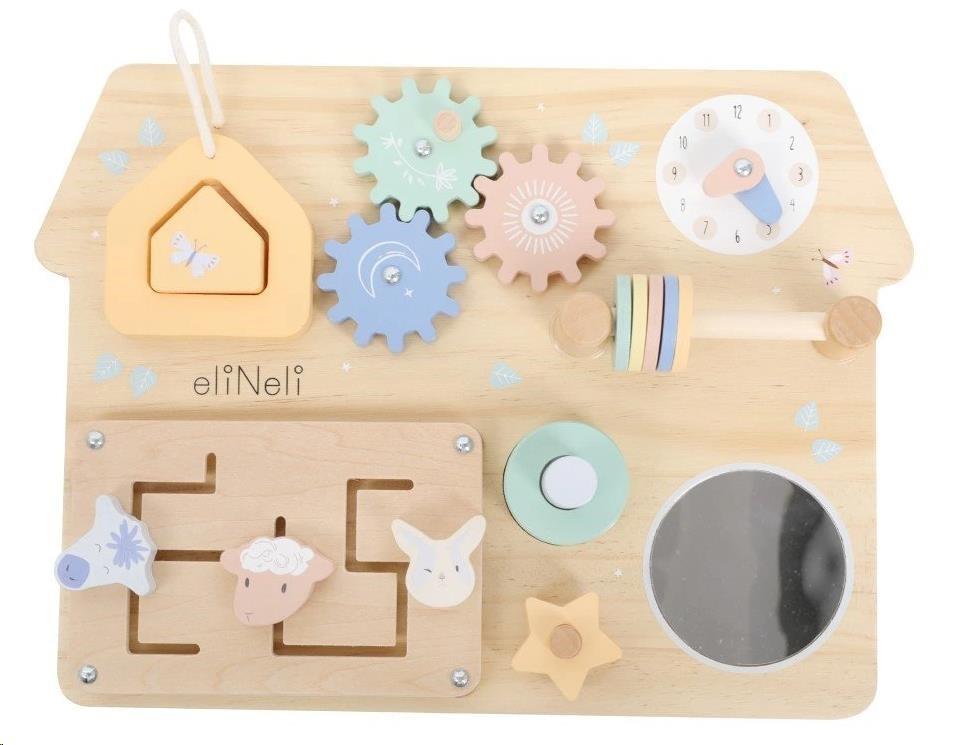 Activity board Farma představuje hned několik hraček v jedné. Hrací prvky jako ozubená kola, bludiště, domeček, nasazovací tvary, mini počítadlo, zrcátko a hodiny děti hned tak neomrzí. Příjemné pastelové barvy a motiv zvířátek dodávají hračce lákavý vzhled a lákají k pečlivému prozkoumání. Při hře děti zdokonalují své dovednosti, učí se poznávat barvičky, tvary i zvířátka z farmy.. NoName není konkrétní značka nebo výrobce, ale spíše označení pro generické produkty, které nejsou spojeny s konkrétní známou značkou. Dodavatel: eD system a.s., Novoveská 1262/95, 709 00 Ostrava - Mariánské Hory, CZ