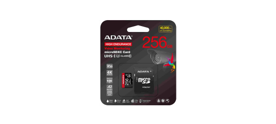 Karty ADATA High Endurance microSDXC/SDHC UHS-I jsou velmi odolné, paměťové karty třídy 30 (V30) rychlosti videa. Tyto karty jsou určeny speciálně pro nepřetržitý záznam a konstantní opakovaný záznam. Ideálně se hodí pro kamery do auta, pro bezpečnostní sledovací systémy a pro všechna další použití, která vyžadují nepřetržitý záznam.
