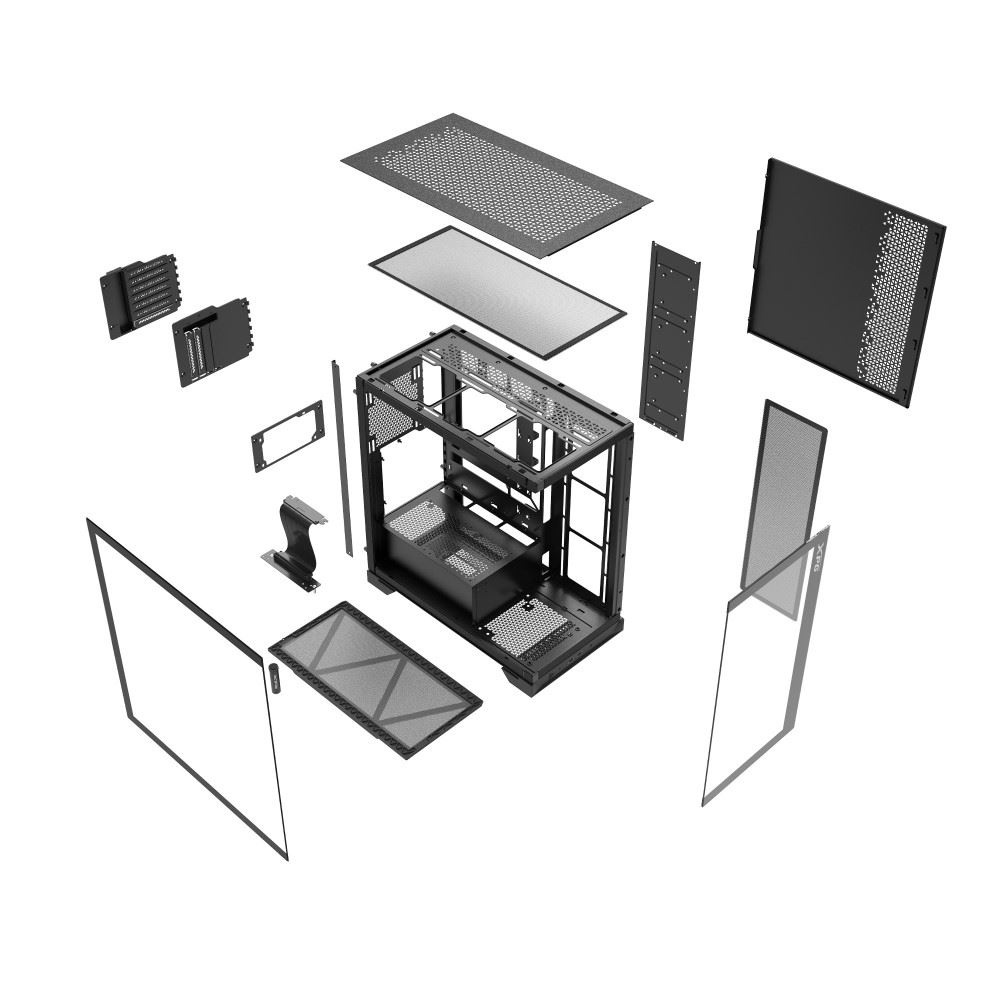 Skříň INVADER X umožňuje snadnou instalaci základních desek s konektory na zadní straně. Využívá zcela nový design s integrovaným kanálem pro kabely, obsahuje pět předinstalovaných kabelových svorek XPG a ponechává 36mm prostor pro uspořádání kabelů. Ve skříni je tak snazší uspořádat kabely a je zde k dispozici širší prostor pro instalaci základní desky.