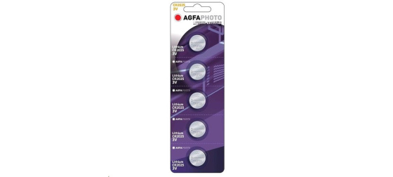 AgfaPhoto knoflíková lithiová baterie CR2025, blistr 5ks