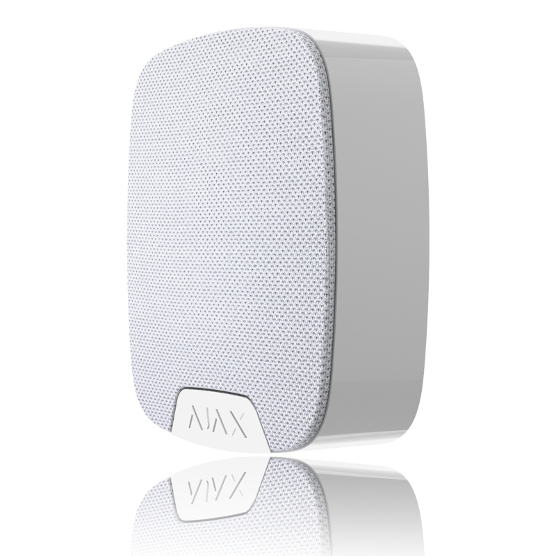 Ajax HomeSiren je bezdrátová siréna určená pro použití ve vnitřních prostorech. Intenzitu akustické signalizace lze libovolně nastavit v rozmezí 81 až 97 dB. Siréna navíc disponuje konektorem pro připojení externí LED signalizace. Díky unikátnímu protokolu Jeweller může komunikovat s Ajax Hubem až na vzdálenost 2 000 m v otevřeném prostoru.