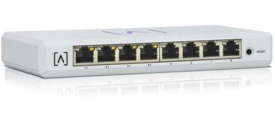 S8-POE od společnosti Alta Labs je cloudově managovatelný, menší desktopový switch do méně exponovaných míst s plastovým šasi a 8x 10/100/1000 ethernetovými porty, z čehož 4 porty podporují 802.3af/at PoE+ standardy (30W/port) s celkovým PoE budgetem 60W. Alta Labs S8 POE Switch Klíčové funkce Power over Ethernet, PoE budget 60W Jednoduché nastavení přes Bluetooth Cloud management s mobilní aplikací - Access Pointy i Switche v jednom cloudu VLAN stacking Omezení rychlosti na výstupu a vstupu IGMP snooping *(budoucí firmware) 802.1X autentizace *(budoucí firmware) Detekce zakruhování *(budoucí firmware) DHCP snooping *(budoucí firmware) Přizpůsobitelný Dashboard Site manager Další funkce přijdou s automatickými aktualizacemi firmwaru Obsah balení Zařízení Napájecí adaptér 54V / 1.3A Plastový držák na zeď Šroubky a hmoždinky Konektory a rozhraní Rychlost LAN (8) 10/100/1000Mbps Ostatní Bluetooth Napájení Typ napájení DC konektor Typy PoE PoE-Out (pouze) Podporované PoE-Out standardy 802.3af, 802.3at Počet PoE Out portů 4 PoE budget [W] 60 Max. spotřeba energie [W] 8 Napájení přes konektor/svorkovnici 54V / 1,3A Fyzické charakteristiky Provedení Desktop Ventilátory Bez ventilátoru Šasi Plastové Tlačítka Reset Provozní teplota [°C] -5 až 50 Hloubka [mm] 91 Šířka [mm] 180 Výška [mm] 26 Obecné Rychlost přepínání [Gbps] 16 Tabulka MAC adres 8000 Software Management Alta Labs Cloud Funkce VLAN, QoS Výchozí IP adresa Dynamická z DHCP. Ubiquiti Networks, 685 Third Avenue, New York, New York 10017, USA, Kontakt: https://www.ui.com/contact/