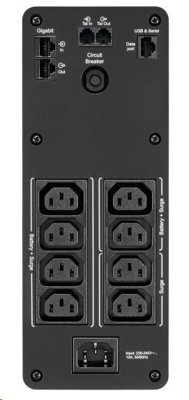 Počet výstupních zásuvek:8; Použití:Desktop; Provedení:Tower; Zdánlivý výkon VA:1200; Topologie:Line-Interactive; Fáze (Vstup/Výstup):1:1; Komunikace:USB; Typ výstupu:IEC 13; Ochrana telefonní sítě; Ochrana datové sítě.Více