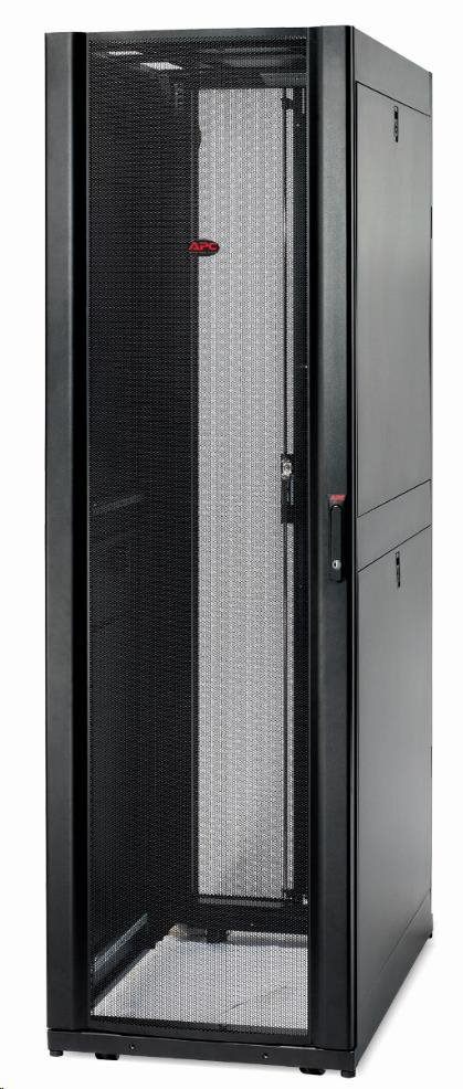 Široká skříň s možnostmi rozšířené správy kabelů pro servery s vysokou hustotou napájení a síťové komponenty. Výška 45U umožňuje snadný transport dveřmi.