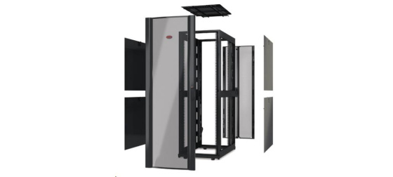 Vysoká a široká skříň s prostorem 48U pro přídavná zařízení a s možnostmi rozšířené správy kabelů pro servery s vysokou hustotou napájení a síťové komponenty.