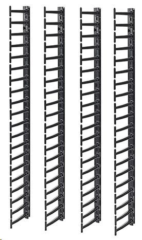 2dílné sekce správy kabeláže mají u každé pozice 1U hladké plastové výstupky, které umožňují uspořádaný vstup a výstup propojovacích kabelů.