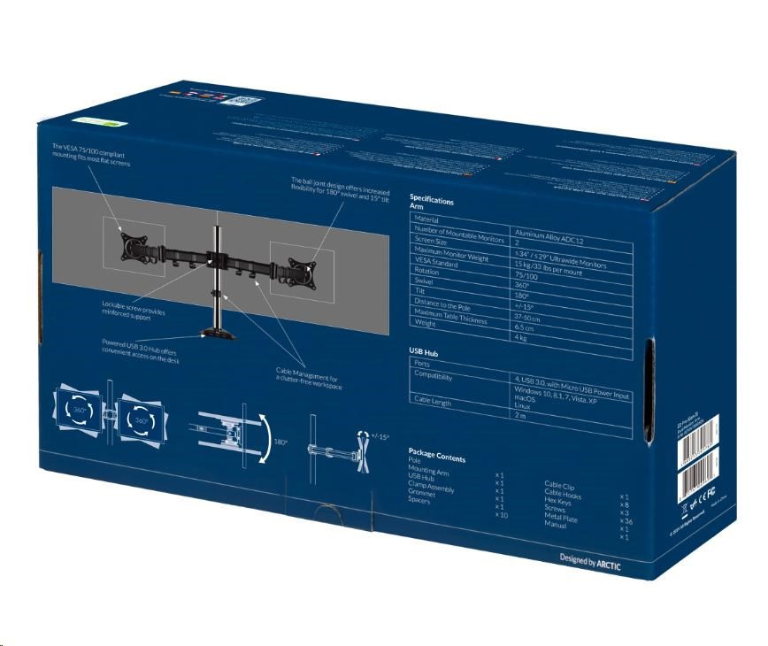 The mounting head of the ARCTIC Z2 Pro makes installation and subsequent alignment changes uncomplicated and easy to manage. It doesn't matter if you want to slightly tilt your monitor or turn it 180 degrees - the only tools you need are your hands.