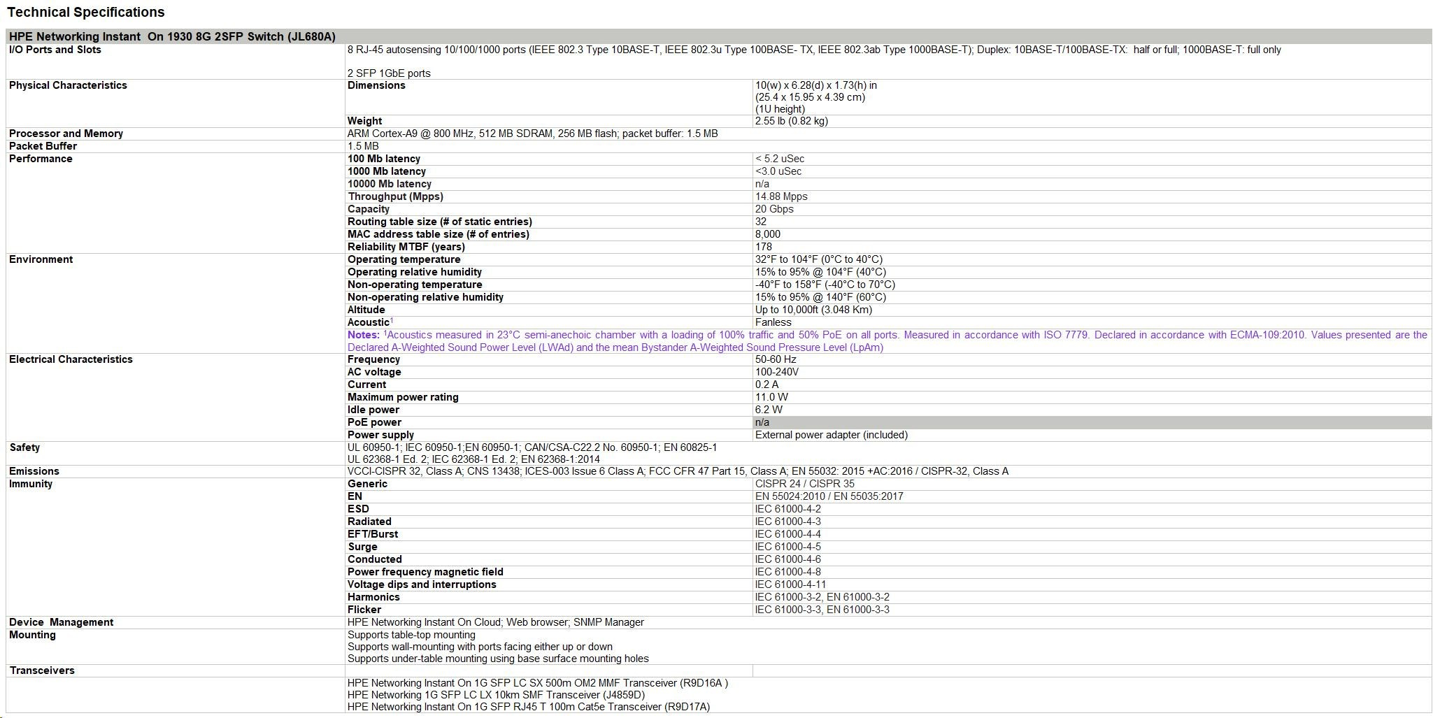 | JL680A - Aruba Instant On 1930 8G 2SFP Switch | |