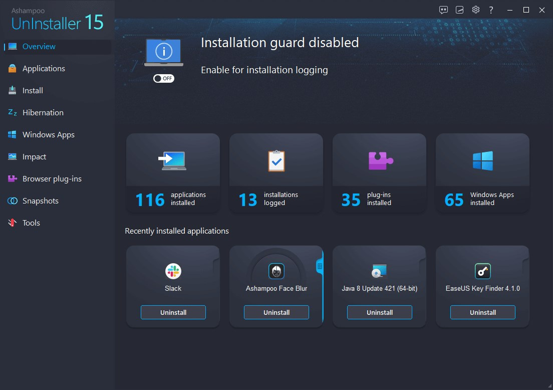 Nový strážce instalace na pozadí v programu Ashampoo UnInstaller 15 provádí analýzu instalace v reálném čase, která je až 10x rychlejší než dříve. Přesně detekuje začátek a konec instalace a lépe podporuje vnořené nebo vzácné typy instalací. Ať už zkoušíte nové programy nebo aktualizujete svůj oblíbený software, našemu hlídači nic neproklouzne, ať už jde o drobné nebo zásadní úpravy systému. Vyzkoušejte lepší výkon, přesnost a kompatibilitu!