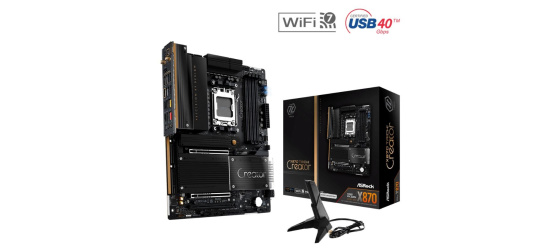 The X870 Taichi Creator features 10GbE and 5GbE LAN, dual USB4 Type-C, dual Gen5 M.2 slots, and dual PCIe 5.0 x16 slots with extra spacing for dual-GPU setups.