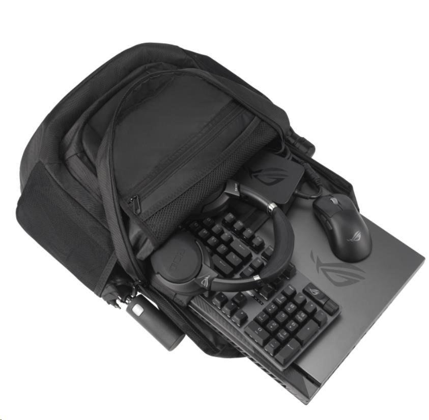 35litrový herní batoh ROG Ranger BP2800 je navržen s ohledem na maximální úložný prostor a má velkou vnitřní polstrovanou kapsu, do které se vejde až 18palcový notebook. Batoh Ranger BP2800 je ideální na krátké výlety a útěky a obsahuje řadu vnitřních a vnějších přihrádek, které na cestách bezpečně uchovávají osobní věci a herní potřeby, jako je klávesnice, náhlavní souprava a myš.