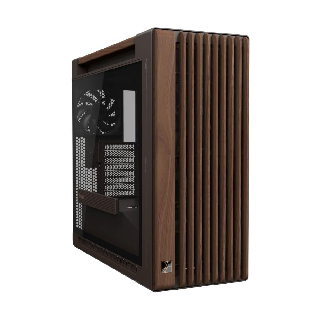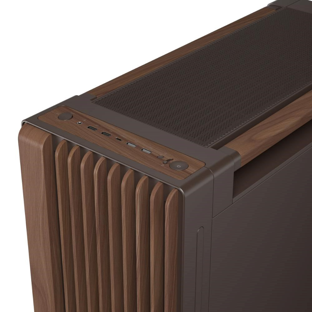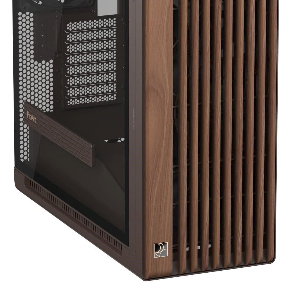 Popis ASUS case PROART PA602 WALNUT WOOD RETRO TG, Mid Tower, průhledná bočnice, hnědá