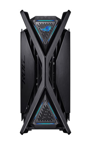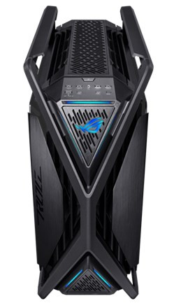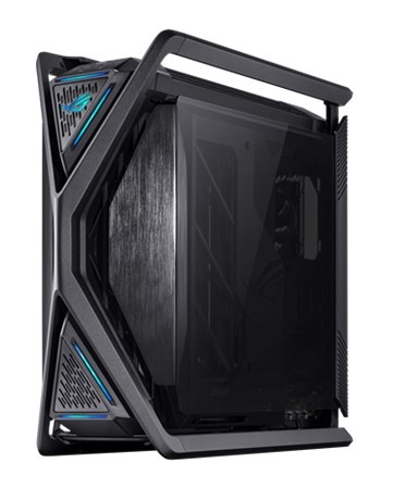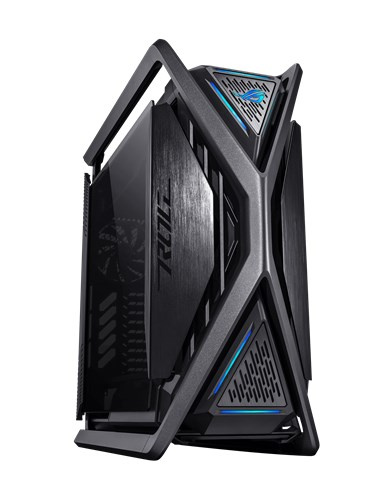 ROG Hyperion GR701 E-ATX computer case, 420 mm dual radiator support, four 140 mm fans, metal GPU holder, component storage, ARGB fan hub, 60W fast charging.