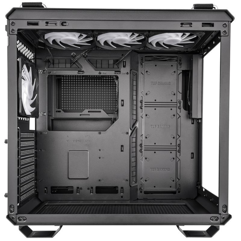 ??Flexibilní, škálovatelné a rozdělené všemi správnými způsoby: TUF Gaming GT502 PLUS umístí váš ceněný hardware dopředu a pojme váš šest s hromadou možností chlazení, přibalenými systémovými ventilátory a osvětlovacím rozbočovačem ARGB pro vyjádření maximálního výkonu. vaše cesta. Naložte, zamkněte se a sledujte, jak to všechno vzkvétá.