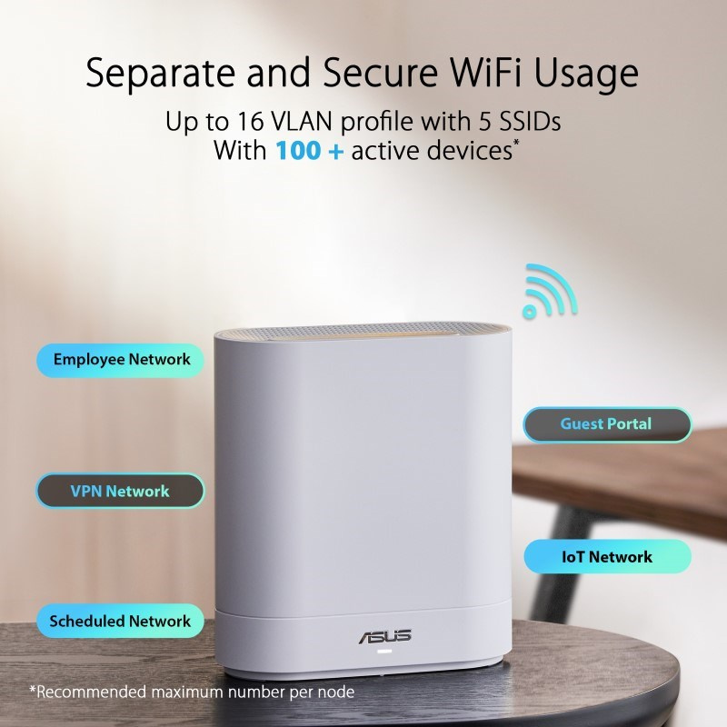 | Zabezpečení | WPA/WPA2/WPA3-Personal, WPA/WPA2/WPA3-Enterprise, Podpora WPS, AiProtection Pro, šifrování DNS, Bezpečné prohlížení, Obousměrný IPS, 24/7 Cloudová ochrana |