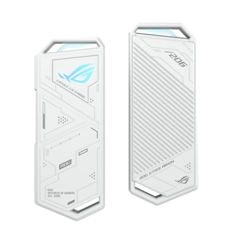Box pro externí M.2 NVMe SSD disky ROG Strix Arion - USB 3.2 GEN2 Type-C (10 Gb/s), dva kabely USB-C do USB-C a USB-A, instalace bez použití šroubováku, obsahuje chladicí podložky, vhodný pro PCIe 2280/2260/2242/2230 M key/B+M Key