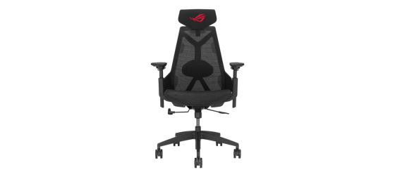 Herní židle ROG Destrier Core ergo s futuristickou estetikou, všestranným nastavením sedadla pro dokonalé držení těla, mobilní herní opěrky rukou a vyrobená z odolného polyamidového nylonu a prodyšné síťoviny pro pohodlné herní maratony.