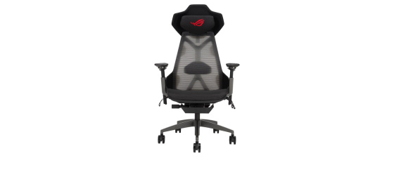 ROG Destrier Ergo Gaming Chair with futuristic cyborg aesthetic, versatile seat adjustments for the perfect posture, mobile gaming arm support mode, and acoustic panel for less distraction and more immersive gaming experience.