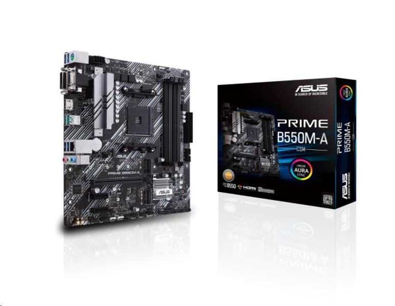 AMD B550 (Ryzen AM4) micro ATX motherboard with dual M.2, PCIe 4.0, 1 Gb Ethernet, HDMI/D-Sub/DVI, SATA 6 Gbps, USB 3.2 Gen 2 Type-A, and Aura Sync RGB headers support
