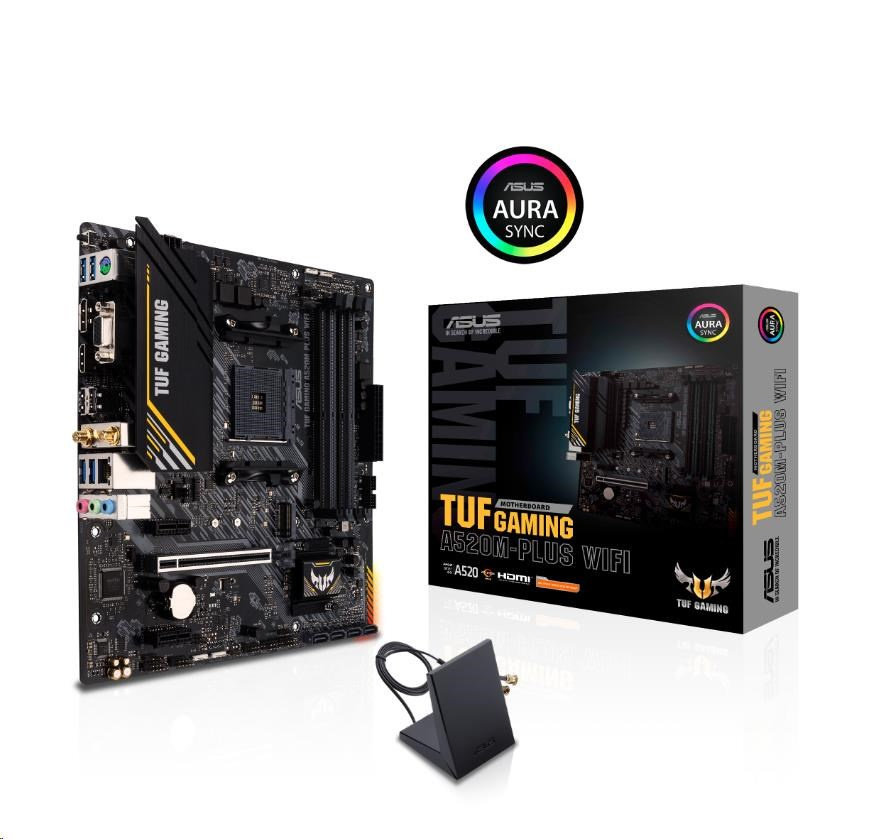 ASUS MB Sc AM4 TUF GAMING A520M-PLUS WIFI, AMD A520, 4xDDR4, 1xDP, 1xHDMI, VGA, WI-FI, mATX