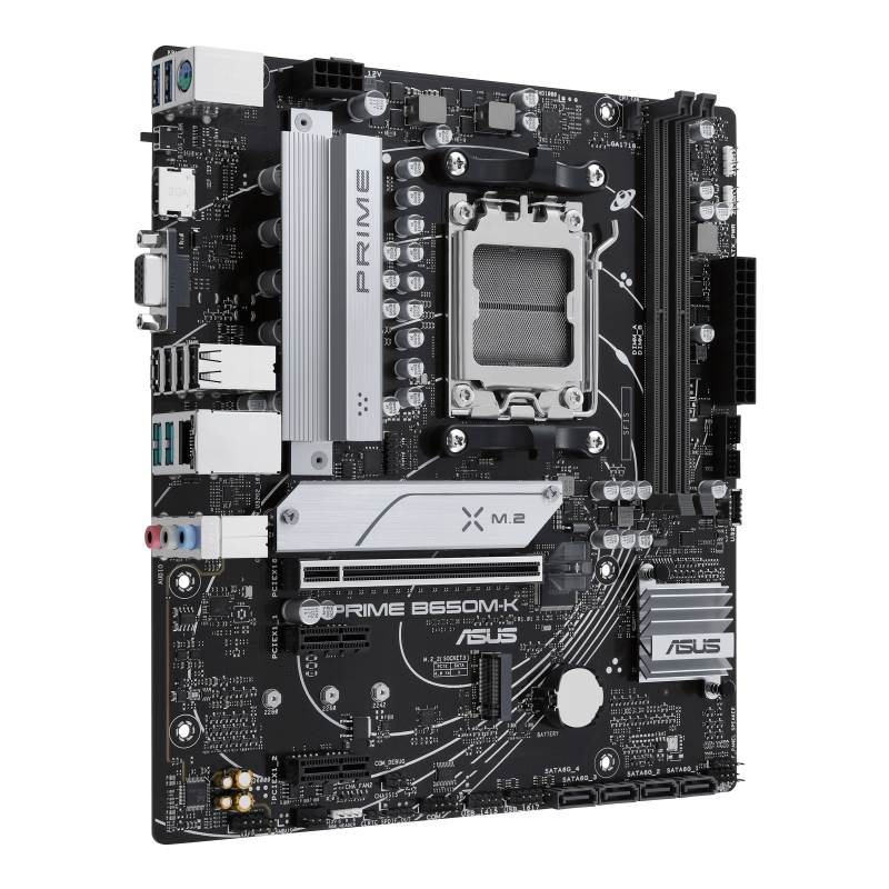 PRIME B650M-K is equipped with outstanding features, including 6-layer PCB design, DDR5, PCIe 5.0 M.2 support, Realtek 2.5Gb Ethernet, USB 3.2 Gen 2 ports, front USB 3.2 Gen 1 Type-C®, BIOS FlashBack™, VGA/HDMI™, Addressable Gen 2 headers, Aura RGB header, Aura Sync, Q-LED Core, ASUS OptiMem II, Fan Xpert 2+, Two-Way AI Noise Cancellation, Armoury Crate, ASUS 5X PROTECTION III and SafeSlot Core+, which will bring users maximizing performance, stability and compatibility for the very best DIY PC experiences.