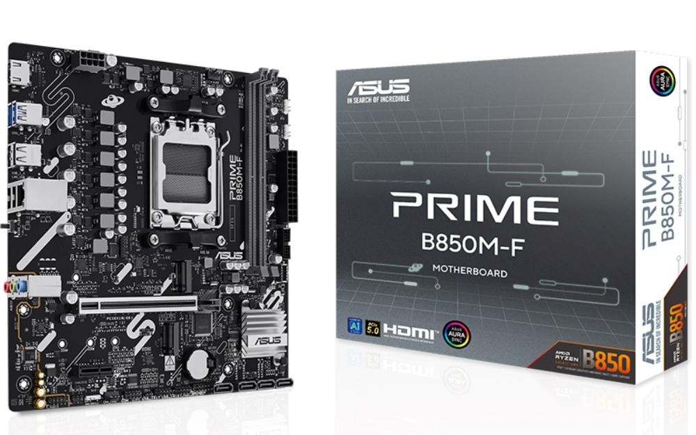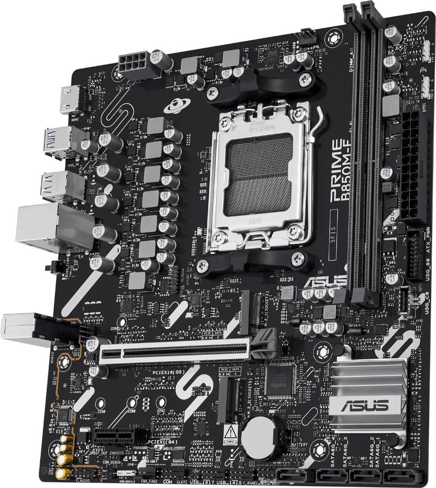 Based on the AMD B850 chipset, the ASUS PRIME B850M-F motherboard is designed to accommodate AMD Ryzen 7000/8000/9000 processors on socket AM5. It is ideal for assembling a gaming or multimedia configuration. More affordable than the X870 chipset, it supports DDR5, PCI-Express 5.0 graphics cards and PCIe 5.0 M.2 SSDs.