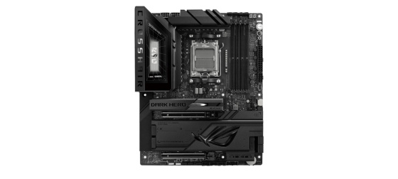 ROG Crosshair X870E Dark Hero delivers refined performance for high-end builds, featuring a robust 20+2+2 power stage design, support for high-speed DDR5 memory, and the latest PCIe® 5.0 connectivity. It offers five onboard M.2 SSD slots with heatsinks, including a 3D VC M.2 heatsink for advanced thermal performance, along with Realtek 10G Ethernet and USB4® ports for next-generation connectivity. ASUS-exclusive AI technologies and Polymo Lighting II complete the platform, balancing intelligent tuning with a clean, premium aesthetic.