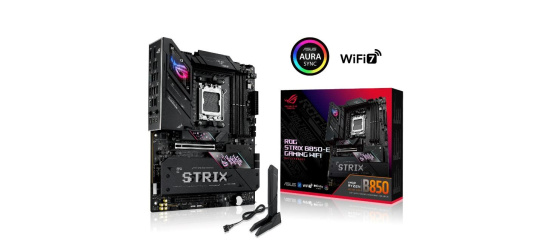 The ROG Strix B850-E Gaming WiFi is engineered to harness the full potential of AMD Ryzen™ 9000 Series processors. Featuring PCIe® 5.0 support, AI Overclocking, AI Networking II, and AEMP, setup is streamlined while performance is maximized. One USB4® Type-C port and WiFi 7 with Realtek 5Gb Ethernet ensure top-tier connectivity, while robust heatsinks keep M.2 drives cool under heavy loads. This motherboard not only meets the demands of gaming and professional applications but also delivers the power and connectivity essential for advanced AI PC applications.