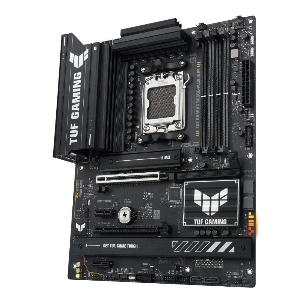 ASUS TUF GAMING B650E-PLUS WIFI takes all the essential elements of the latest AM5 Socket for AMD Ryzen™ Desktop Processors and combines them with game-ready features and proven durability. Engineered with military-grade components, an upgraded power solution and a comprehensive cooling system, this motherboard goes beyond expectations with rock-solid and stable performance for marathon gaming. TUF GAMING motherboards also undergo rigorous endurance testing to ensure that they can handle conditions where others may fail. Aesthetically, this model incorporates rugged off-black and geometric design elements to reflect the dependability and stability that defines the TUF GAMING series. This platform delivers the power and connectivity that advanced AI PC applications demand.