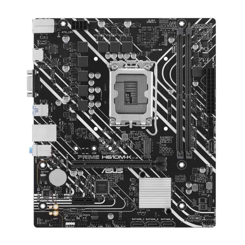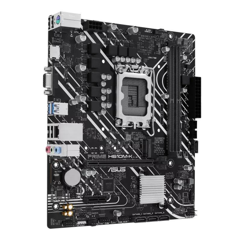 Intel® H610 (LGA 1700) micro-ATX motherboard, DDR5, PCIe 4.0, M.2 slot, Realtek 1 Gb Ethernet, HDMI™, VGA, USB 3.2 Gen 1, SATA 6 Gbps, COM header, RGB header