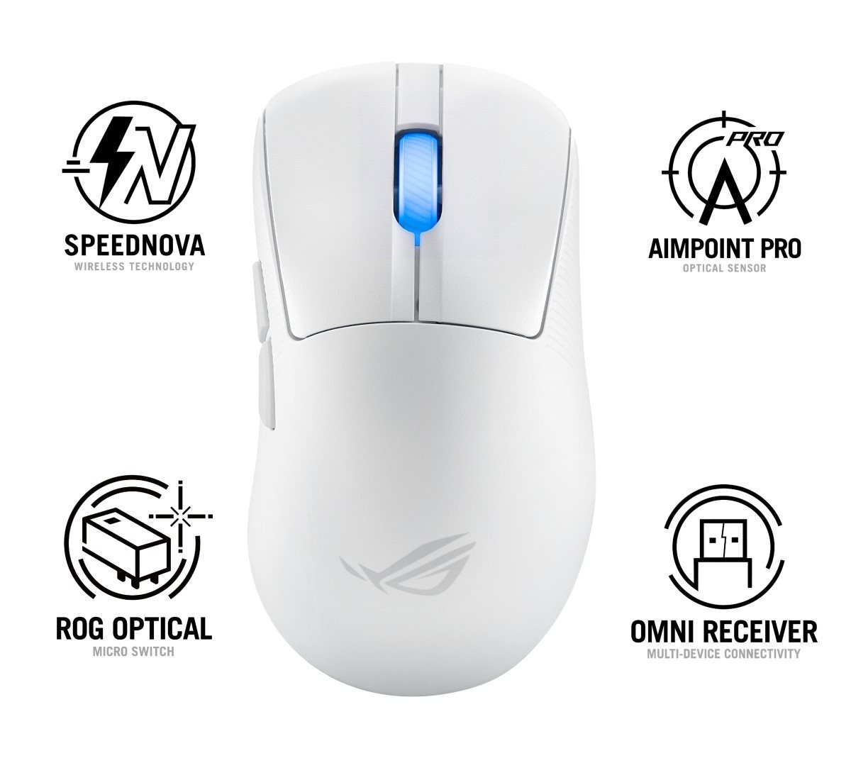 - Optický senzor ROG AimPoint Pro: Optický senzor s rozlišením 42 000 dpi s odchylkou < 1 % pro maximální přesnost a možnost sledování stopy na skle