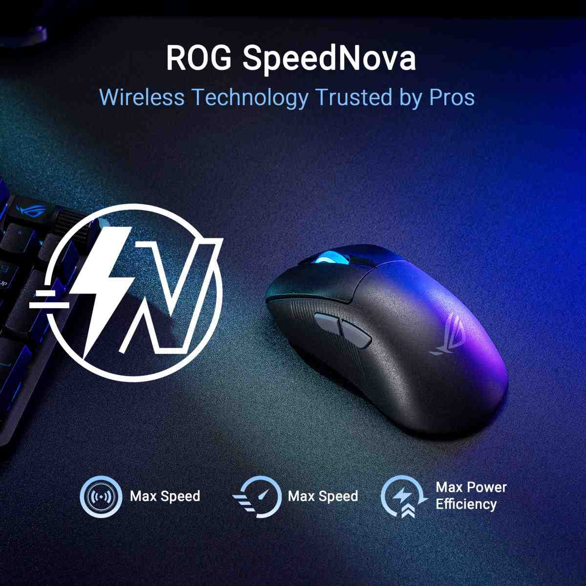 - Bezdrátová technologie ROG SpeedNova: Spolehlivý bezdrátový 2,4 GHz RF výkon s nízkou latencí a optimalizovaná energetická účinnost
