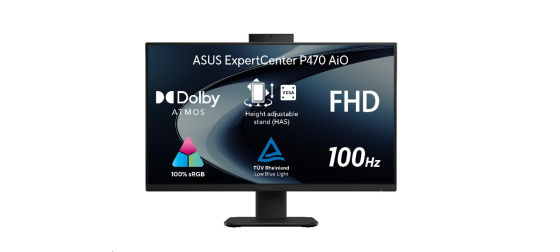 ASUS ExpertCenter P400 AiO je náš dosud nejtenčí AiO s tenkým panelem od okraje k okraji a působivým poměrem obrazovky k tělu 93 %. Jeho 27palcová dotyková obrazovka FHD2 nabízí pozorovací úhly178° a 99% barevný gamut sRGB pro živé a realistické barvy. Díky antireflexnímu displeji a certifikaci TÜV Rheinland pro nízké emise modrého světla zajišťuje optimální oční komfort při dlouhodobém používání.