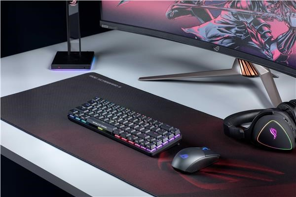 ROG Scabbard II extended gaming mouse pad with protective nano coating for a water-, oil-and dust-repellant surface, with anti-fray, flat-stitched edges and a non-slip rubber base