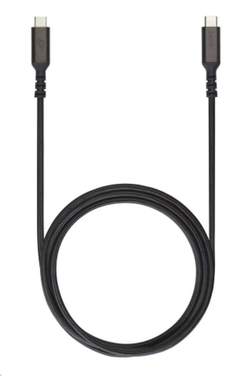 Kabel ROG 240W USB-C je dlouhý 1,5 m a je vybaven čipem E-Marker, který zajišťuje rychlé a stabilní nabíjení a datové přenosy. Jeho odolný design je ideální pro každodenní použití.