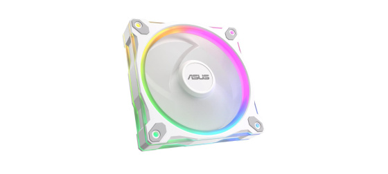 Reverzní ventilátor ASUS Prime MR120 ARGB s oboustranným osvětlením na rámu a tloušťkou 28 mm poskytuje ideální chladicí výkon