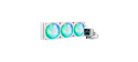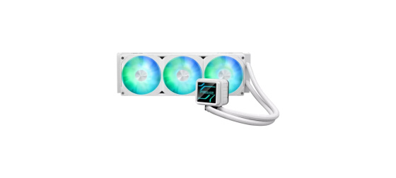 All-in-one vodní chladič procesoru Prime LC ARGB White Edition s velkou kontaktní plochou a žebrovanými kanály, vodním blokem s možností volby nekonečných zrcadlových čoček, integrovanými ventilátory ARGB a osvětlením Aura.
