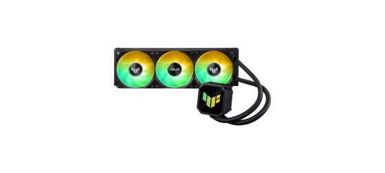 TUF Gaming LC III 360 ARGB all-in-one vodní chladič CPU s předinstalovanými a integrovanými trojitými ventilátory navrženými pro vysoký průtok vzduchu a statický tlak; účinné čerpadlo pro zajištění optimální provozní teploty CPU.