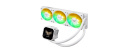 TUF Gaming LC III 360 ARGB LCD all-in-one vodní chladič CPU s předinstalovanými a integrovanými trojitými ventilátory navrženými pro vysoký průtok vzduchu a statický tlak; 2,8" LCD pro monitorování hardwaru, vlastní GIFy a MP4 videoklipy