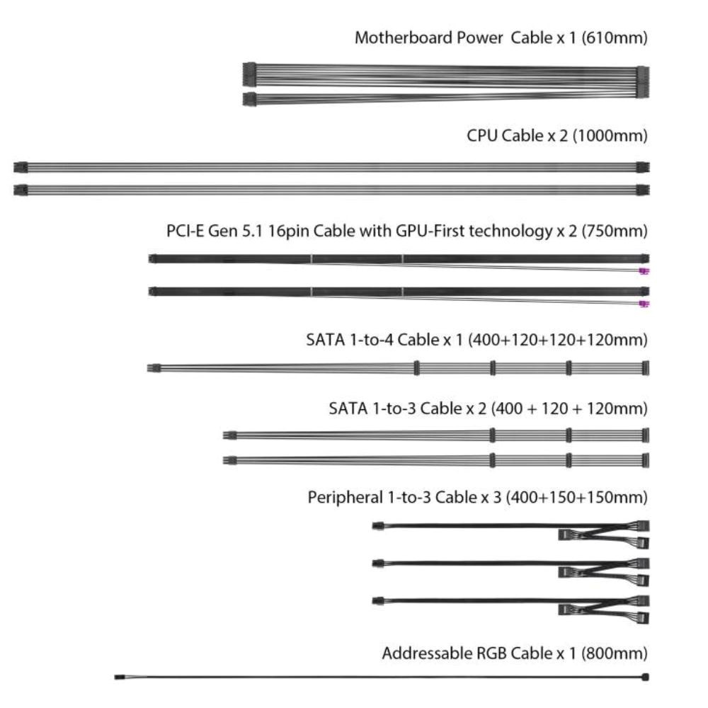 Výkon zdroje (W):1600; Formát zdroje:ATX; Konektory:8pin CPU 1x, 8pin CPU 2x, PCIe 6-pin, PCIe 8-pin, PCIe 16-pin Gen5, SATA 15-pin, Molex; Konektory pro základní desku:ATX 20-pin, ATX 24-pin, EPS 8-pin; Modulární kabeláž; Efektivita zdroje:80 Plus Titanium; Vlastnosti zdroje:Modulární kabeláž; Podsvícení:ARGB.Více