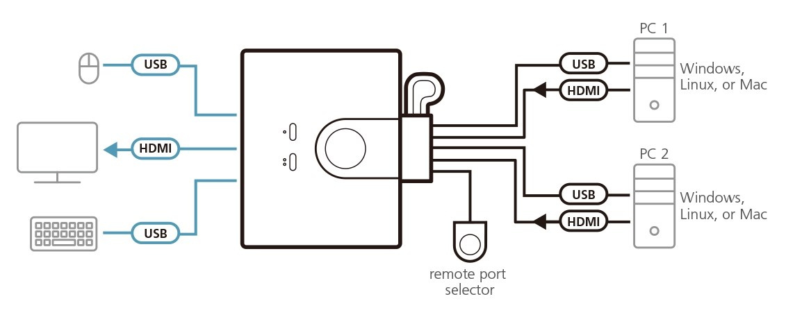 ATEN 2-port mini HDMI KVM USB, integrované kabely, tlačítko pro přepínání
