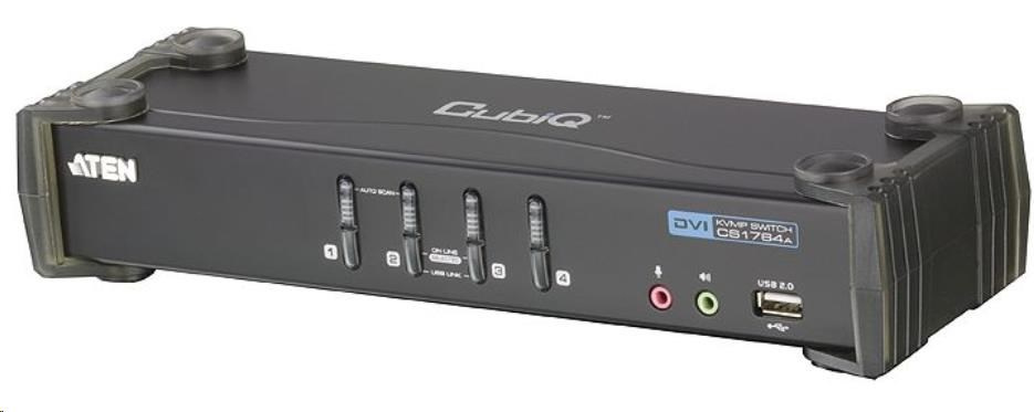 CS1764A ATEN 4-port DVI KVMP USB, 2port USB HUB, audio, 1.2m kabely 4PC - 1 DVI + 1 USB kláves. + 1 USB myš + 2 USB periferie Umožňuje ovládat pomocí USB konzole (klávesnice + myš + DVI monitor) až 4 počítače a dvě další USB 2.0 periferie. - extrémní kvalita videa až 1920 x 1200, 60Hz; DDC2B - umožňuje spravovat 4 PC na jedné kl.,m.,monitoru a dvě dalši USB 2.0 zařízení - možnost připojit počítače po USB - možnost nezávislého přepínání PC a USB a audio zařízení - včetně kabelů pro propojení PC-přepínač - multiplatformní podpora - Windows, Linux, Mac a Sun - výběr PC pomocí hotkey kláves nebo tlačítka na předním panelu - včetně kabelů, v sadě - umožňuje i přepínání audia (až 2.1 audio) - DVI digital a analog podpora monitoru - HDCP compliant - Video DynaSync™ - uchová informaci o monitoru konzole EDID (Extended Display Identification Data) - Power on detection - jestliže je počítač vypnut, přepne na další aktivní port - Sun /Mac podpora klávesnice a její emulace - Auto Scan Mode V balení: 1x CS1764A USB 2.0 DVI KVMP™ Switch 4x Kabelový set pro připojení 4 PC (DVI-D) 1x Napájecí adaptér 1x Manuál 1x Quick Start příručka Podpora Windows 7.. , ,